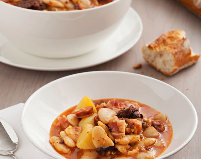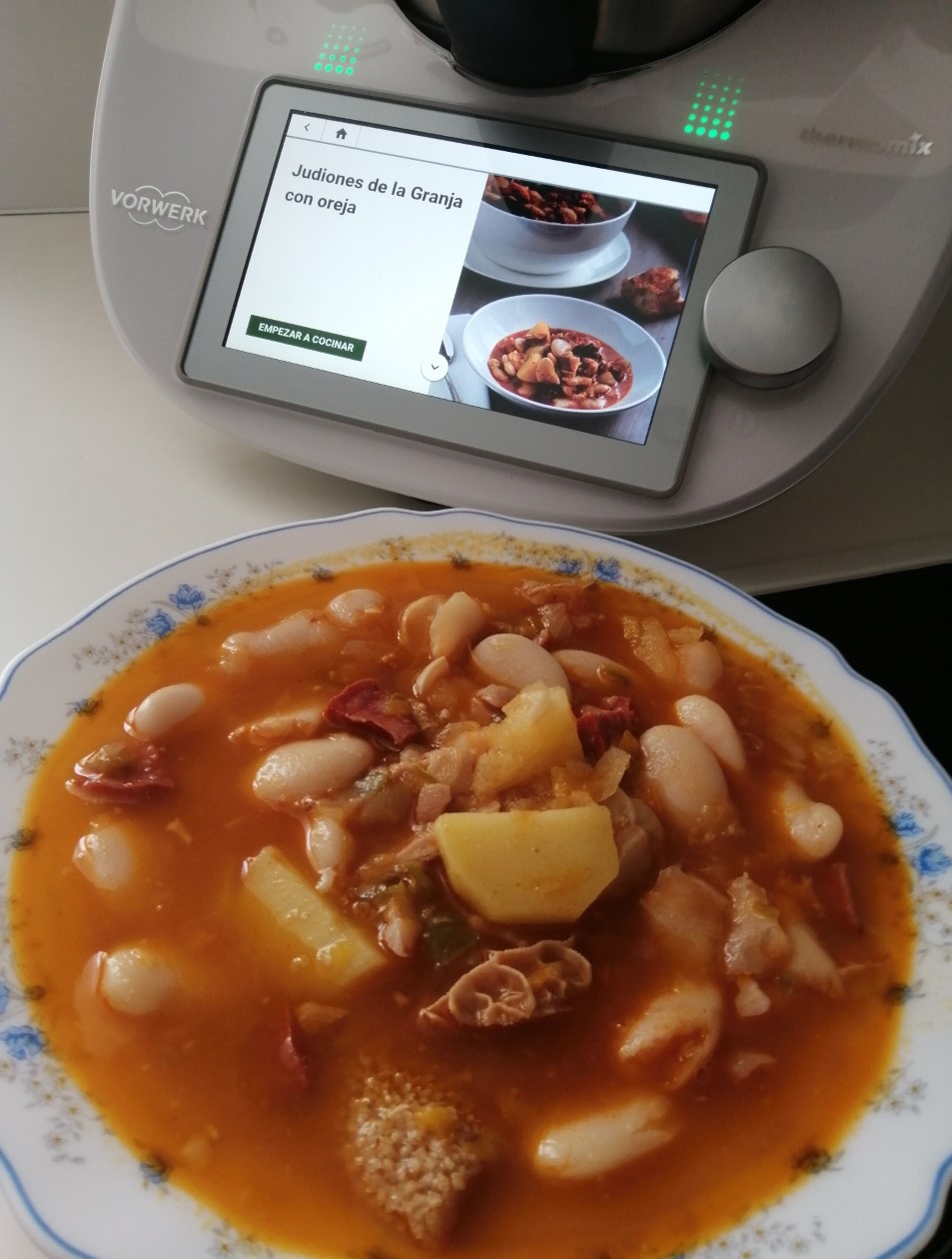 - 800 g de judías blancas cocidas (en conserva) (judiones de la Granja, aclarados y escurridos)