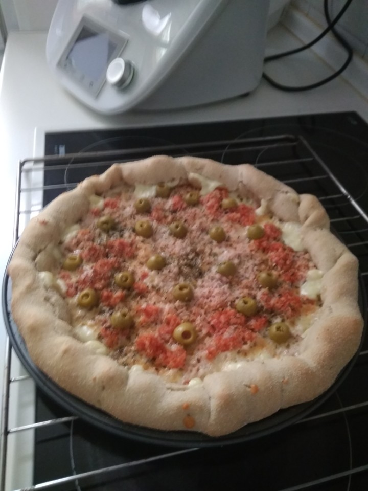 3 Precaliente el horno a 220ºC. Unte con mantequilla un molde de pizza ( 35 - 40 cm )