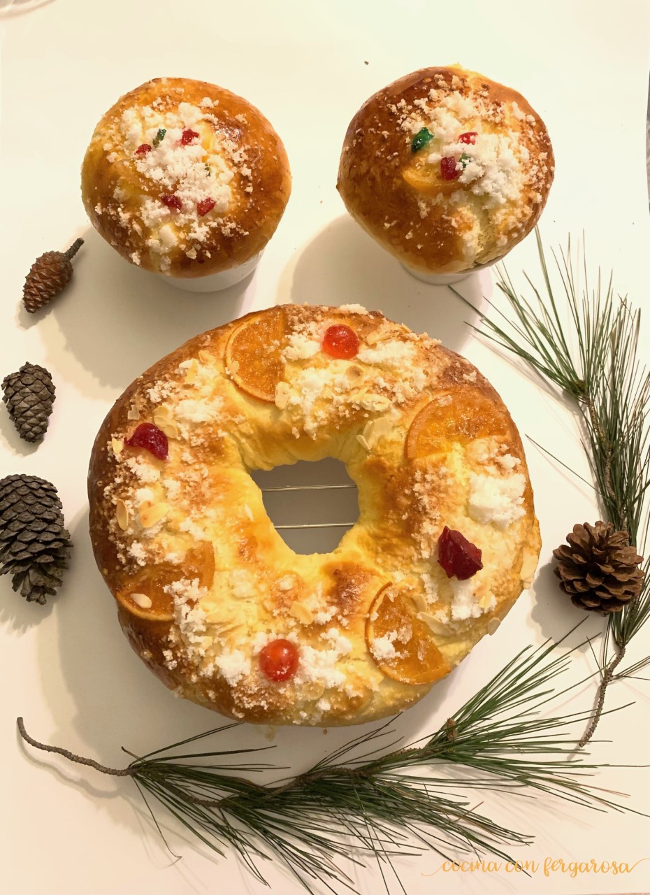 El roscón en mi casa es el desayuno el dia de Reyes acompañado con un chocolate a la taza, juntos toda la familia y lo pasamos genial a ver quien le toca el regalo que siempre escondo, o el haba, es muy divertido estando juntos, aunque este año no ha podido ser así, pero como es tradición cada uno en su casa lo hemos hecho, y he querido hacerlo mas pequeño, y también individuales